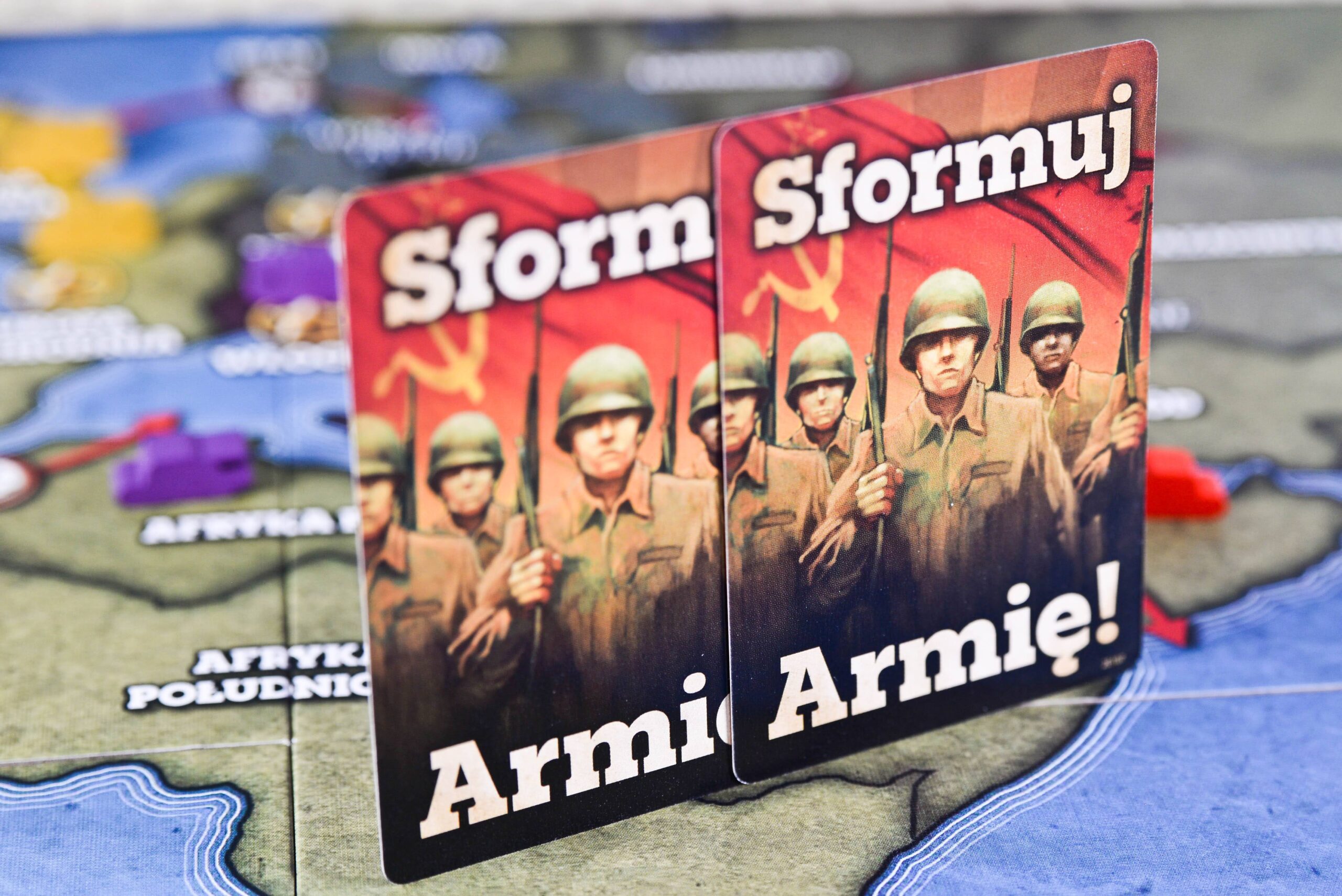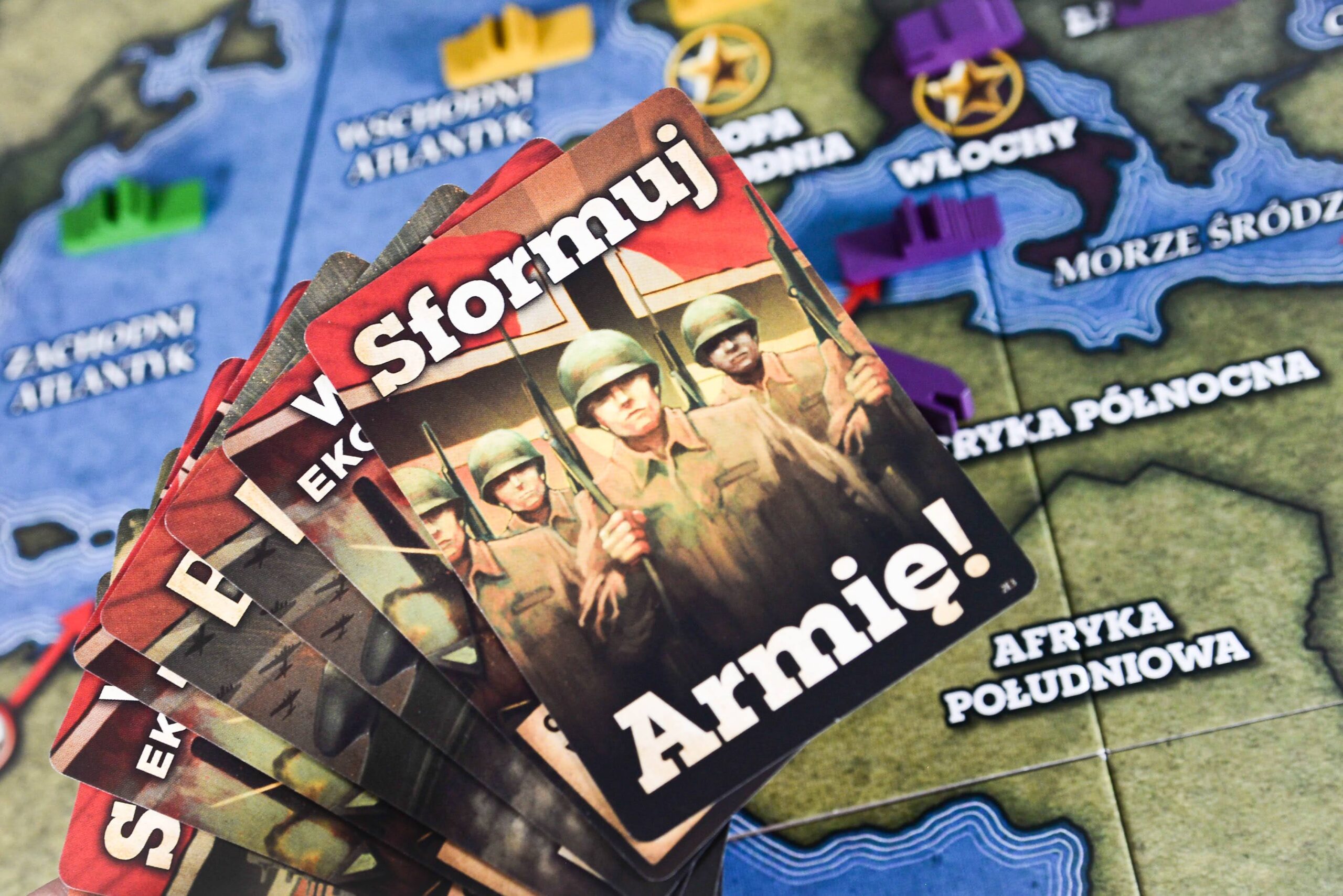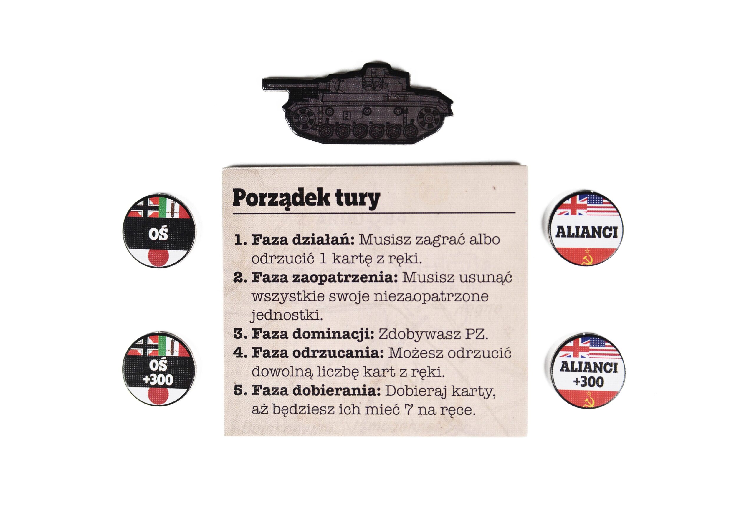 Plansza do gry. Instrukcja. 220 kart. 33 drewniane pionki Armii. 23 drewniane pionki Floty. 4 znaczniki Punktów Zwycięstwa. 1 znacznik Rundy Gry. 2 znaczniki Źródeł Zaopatrzenia.